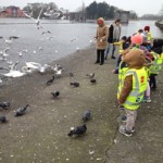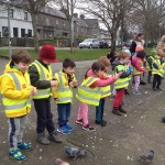 On Monday the Infants went down to the River Corrib to feed the birds. We saw swans, pigeons and seagulls. We talked about what the big stone columns in the water could be. We learned how there used to be a bridge there and that the train used to go to Clifden on this line.