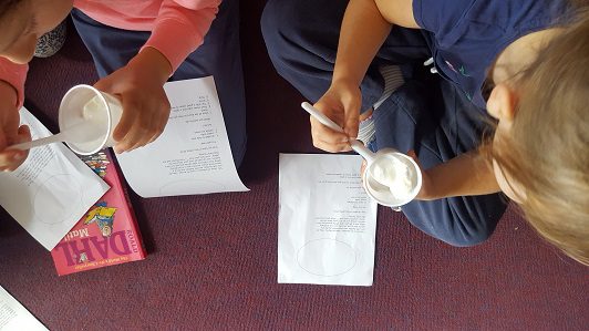 First and Second Class celebrated by making one of Roald Dahl’s recipes….The Fizzy Lifting Drink!! Luckily nobody opened the door so nobody floated off to the moon!!!