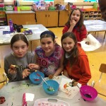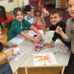 For our art we painted our own galaxies on black paper and filled them with planets. We also did some wool painting by dipped the wool in paint and dragging it across the page to make Jackson Pollock-esque works of art. We made a new afterschool board with all of the afterschoolers handprints in different colours and everyone signed their own name.