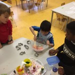 We did a lot of baking this month; we made marshmallow people using food colouring and cocktail sticks to draw little faces on them. We made icing and decorated cupcakes in all the colours of the rainbow. We also baked chocolate chip cookies as a group and everyone got to do a little something and bring one home with them!