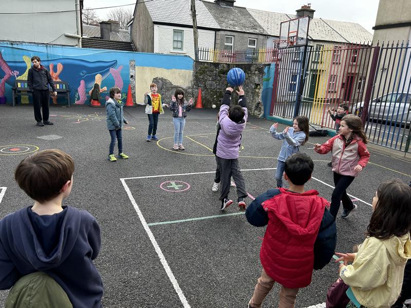 ⛹️Hail, rain or snow – basketball coaching goes ahead with Jake every Monday! Great basketball skills on display – maith sibh gach duine and go raibh mile Jake! #ActiveSchool #CitySchool #HeartOfGalway