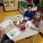 At our Creation Station, we designed our own mittens and wooly hats and made clothes out of playdoh. We learned all about the famous artist, Jackson Pollock, and tried to recreate his painting style using wool and clothes pegs.