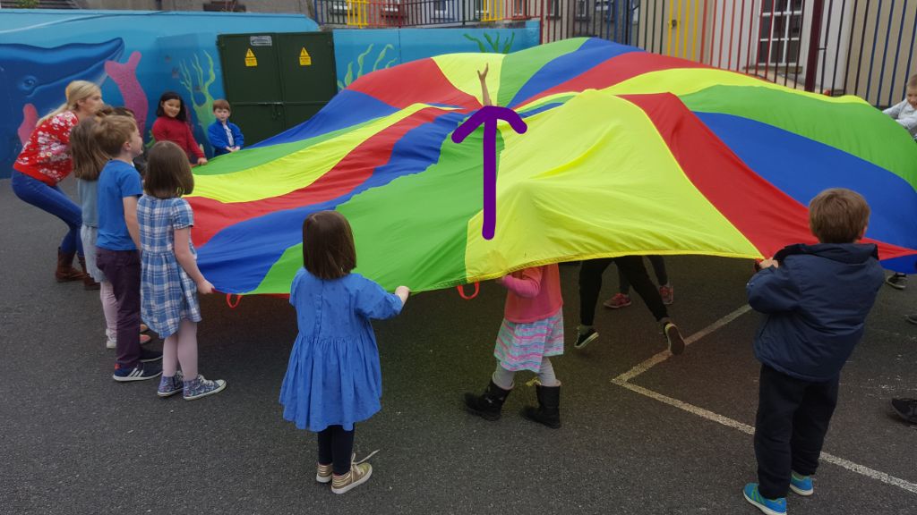 Parachute Playtime! May 3, 2019 There was great teamwork on the playground this morning!! Take a look at the photos below!! #CooperativeGames #Teamwork #ColourEverywhere #BrightAndBeautiful #Rainbows #Waterside #Woodquay #GalwayCity