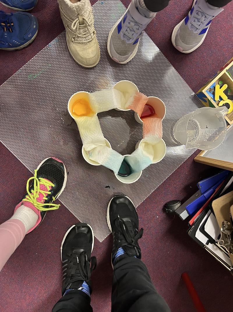 A very busy morning in this room experimenting with water, food colouring and kitchen paper to create rainbow circles!!! Teamwork, Dream Work!!! #STEM #HandsOn #ActiveLearning