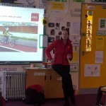 Catherine from the RSA came in today to talk to the children about road safety. Amongst the topics she discussed were safety in the car, safety on the bus, safety on bicycles and how important it is to always wear a helmet when cycling. The children each got a RSA reflective armband to wear on their RIGHT arm. – Don’t forget to pass on Catherine’s safety tips everyone!